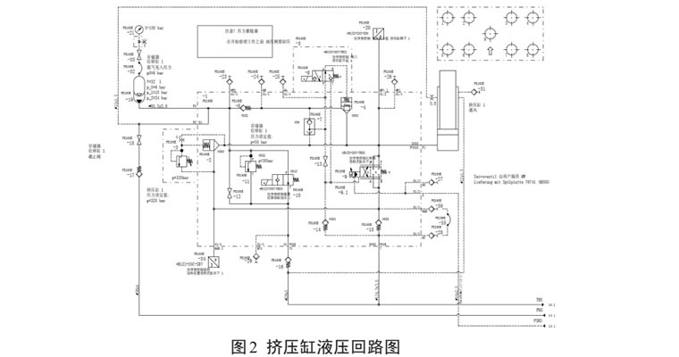 拉伸墊的擠壓力是依靠滑塊壓上拉伸墊而被動產(chǎn)生的壓力,壓力大小的控制由伺服閥來實現(xiàn)。常見的壓力下超故障有缸體活塞密封泄漏、安全閥損壞、伺服閥損壞、預(yù)充油液不足等形式。首先擠壓缸上行是依靠 20bar 的預(yù)充壓力推動活塞桿跟隨頂冠上行至上死點,由于在該過程中每個缸的壓力和位置都沒有監(jiān)控,即使出現(xiàn)預(yù)充壓力不足、活塞沒有上行至上死點都不會故障報警,如圖2所示。在沖壓力下超故障出現(xiàn)以后,可以在操控面板的幫助界面查看擠壓缸預(yù)充壓力是否正常,排除預(yù)充壓力是否合適以后,再排查伺服閥以及伺服閥控制模塊。在長時間停機或者拉伸墊大修以后出現(xiàn)擠壓力下超故障,應(yīng)優(yōu)先檢查插裝式安全閥。由于插裝式安全閥控制油和系統(tǒng)油都是來自擠壓缸的油,而正常情況下安全閥芯都不動作,閥芯活動間隙被油泥填充,在檢修或者啟動期間,如果安全閥芯被意外開啟,復(fù)位彈簧將不能使閥芯復(fù)位。閥芯沒有復(fù)位,擠壓缸下腔的就不能建立起需要的壓力,導致故障產(chǎn)生。